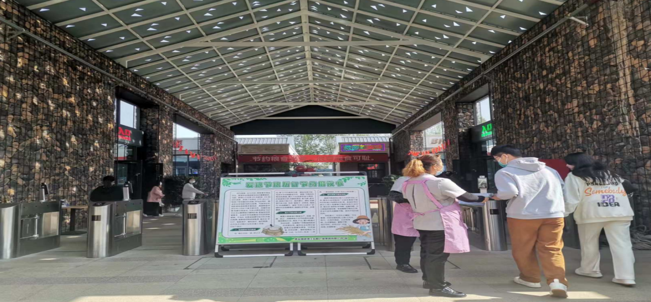2022年10月31日,后勤产业集团办公室响应陕西省教育厅《关于“粮食安全”宣传活动的通知》经过前期周密策划筹备,组织餐饮各项目在沣河苑餐厅、明德1999餐厅及沣味食堂进行了“爱粮节粮厉行节约倡议宣传活动”。活动当天各餐厅通过悬挂主题横幅标语、放置活动宣传海报及倡议书展板、派发活动倡议资料等方式向就餐师生宣传了有关珍惜粮食,文明就餐,倡导“光盘行动”等内容。