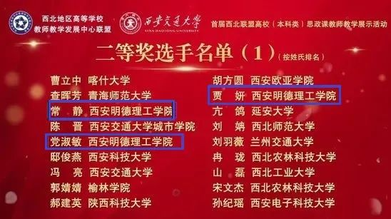 本次教学展示活动,共有西北地区43所高校的202位参赛选手参加比赛。ac米兰共有6名教师参加,在两轮比赛中,我院教师在赛场上做到充分发挥,精彩展示,表现出扎实的理论功底和过硬的教学本领,最终常静、党淑敏、贾妍3位老师荣获二等奖,王璐老师荣获三等奖,学校获评优秀组织奖。