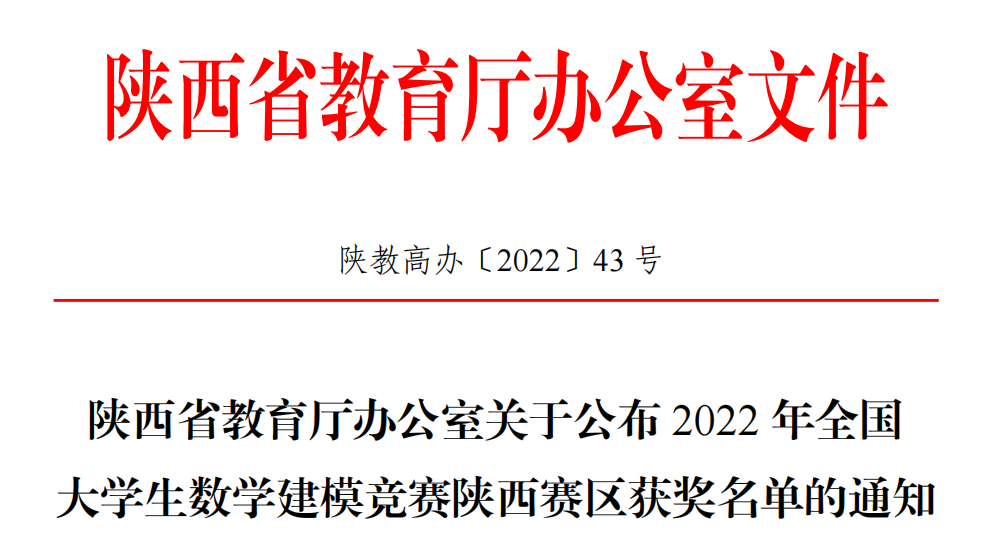 近日,2022年高教社杯全国大学生数学建模竞赛(CUMCM)成绩揭晓。经过激烈角逐,ac米兰共获得本科组陕西赛区一等奖5项,二等奖18项;专科组荣获陕西赛区一等奖2项,二等奖2项,并蝉联陕西赛区优秀组织奖。