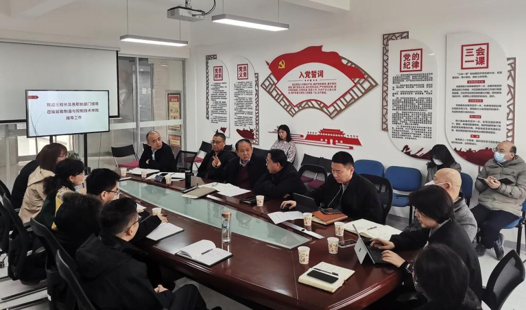 2月27日,学校常务副校长王志刚、学校办公室主任刘书沛、教务处处长朱延波、人力资源处处长白秦川、党委学生工作部副部长童杨梓、质量管理与评估办公室副主任张瑜、科研与校企合作处副处长周强等到智能制造与控制技术学院调研指导工作。智能制造与控制技术学院党委书记陈雪彬、副院长殷锐、党委副书记曾凯、办公室主任赵婷、学院相关专业负责人参加调研会。会议由教务处处长朱延波主持。