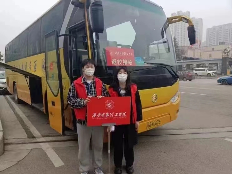 为提高接待效率和服务质量,学工部安排志愿者,在韦曲南站及国际医学中心地铁站接站,校车滚动发车接送学生、为同学们提供便捷乘车服务。