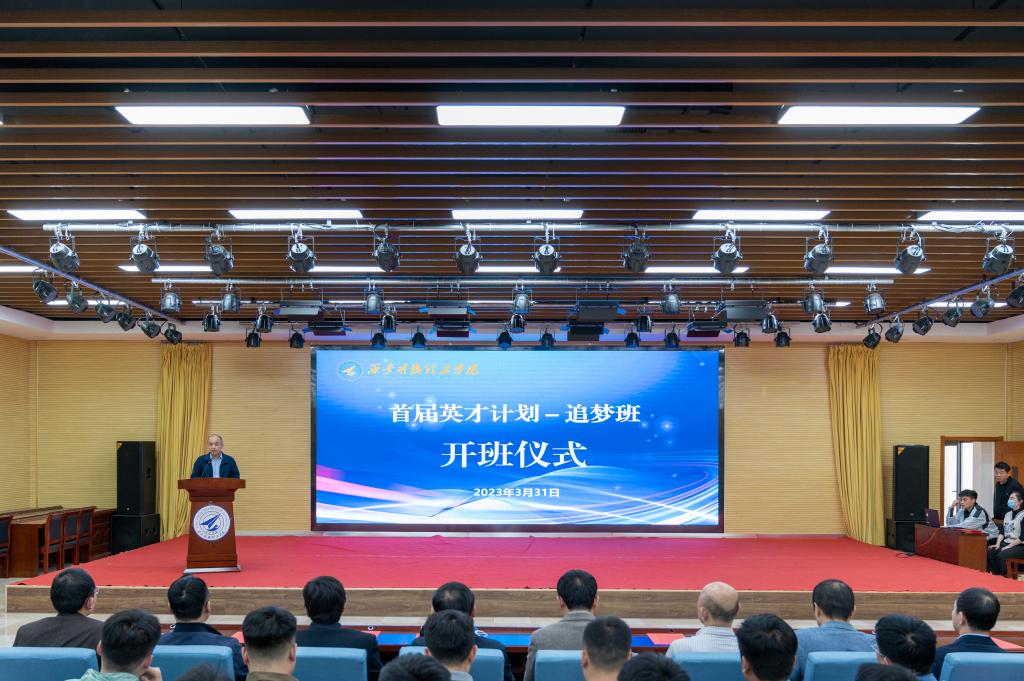 董昊在开班仪式会上对举办英才计划“追梦班”的初衷和意义进行了明确,并期望首届英才计划“追梦班”学员要珍惜机会,立志成才,飞的更高、走的更远,成为一名德智体美劳全面发展的优秀大学生。