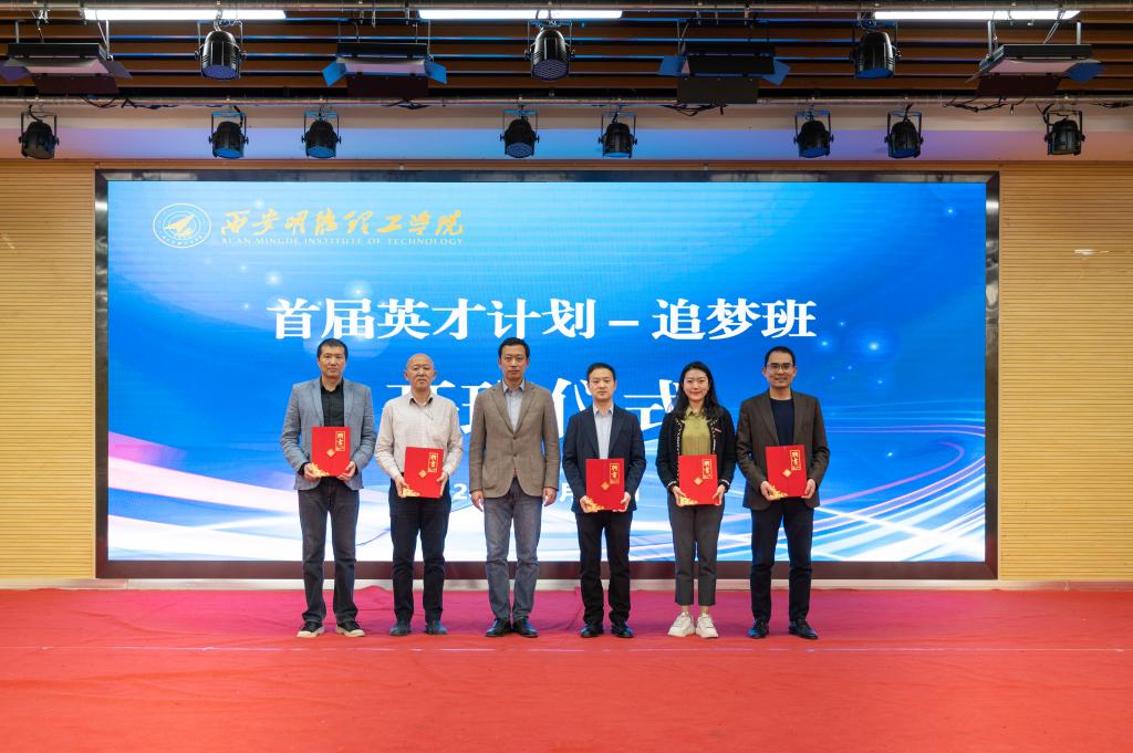 在开班仪式会上,童杨梓宣读了《ac米兰官方网站英才计划“追梦班”实施方案》及首届英才计划“追梦班”学员名单。董昊代表学校为“追梦班”授班旗并为班主任颁发聘书。学校首届英才计划“追梦班”学员代表102012103班宋固磊同学进行表决心发言。ac米兰2011级校友、西北工业大学博士、智能制造与控制技术学院专职教师叶天老师通过视频方式致寄语,勉励“追梦班”学员珍惜机会、勤奋好学。ac米兰2017级校友、西北工业大学在读硕士研究生高少天同学亲临现场为“追梦班”学员作学习经验分享,勉励同学们要自律、自信、自强,鼓励同学们找准目标,积极深造,发奋努力。