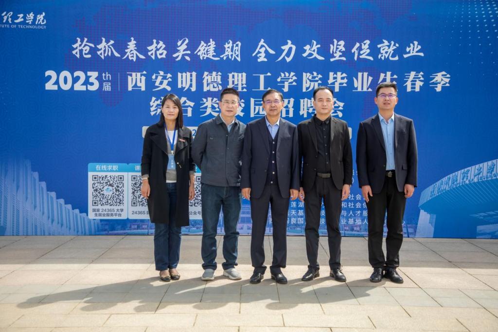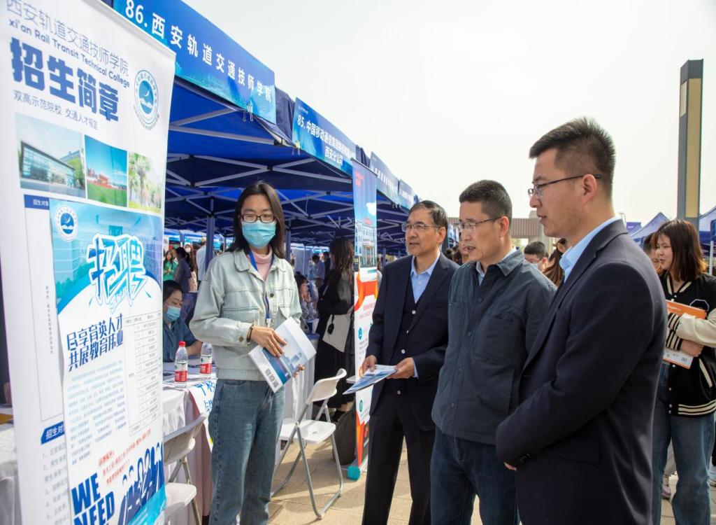 为深入贯彻落实党的二十大精神和党中央、国务院“稳就业、保就业”决策部署,响应教育部“抢抓春招关键期,全力攻坚促就业”号召,拓宽毕业生就业渠道,搭建广大毕业生与优质用人单位的双向选择平台,促进毕业生更充分更高质量就业,4月12日上午ac米兰成功举办了由陕西省教育厅、中国西安人才市场管理委员会办公室(陕西省人才交流服务中心)指导、ac米兰主办、西安市长安区人力资源和社会保障局、西安市莲湖区人力资源和社会保障局、西安航天基地科技创新与人才中心、西安阎良国家高新技术产业基地人才服务中心承办的2023届毕业生春季校园综合招聘会。陕西省教育厅二级调研员白炀、高校毕业生就业服务中心陈靖莅临ac米兰考察指导,校长杨健君、副校长刘星对莅临领导表示热烈欢迎并到会与企业招聘代表进行交谈,了解企业基本信息、招聘岗位,学生应聘等情况。