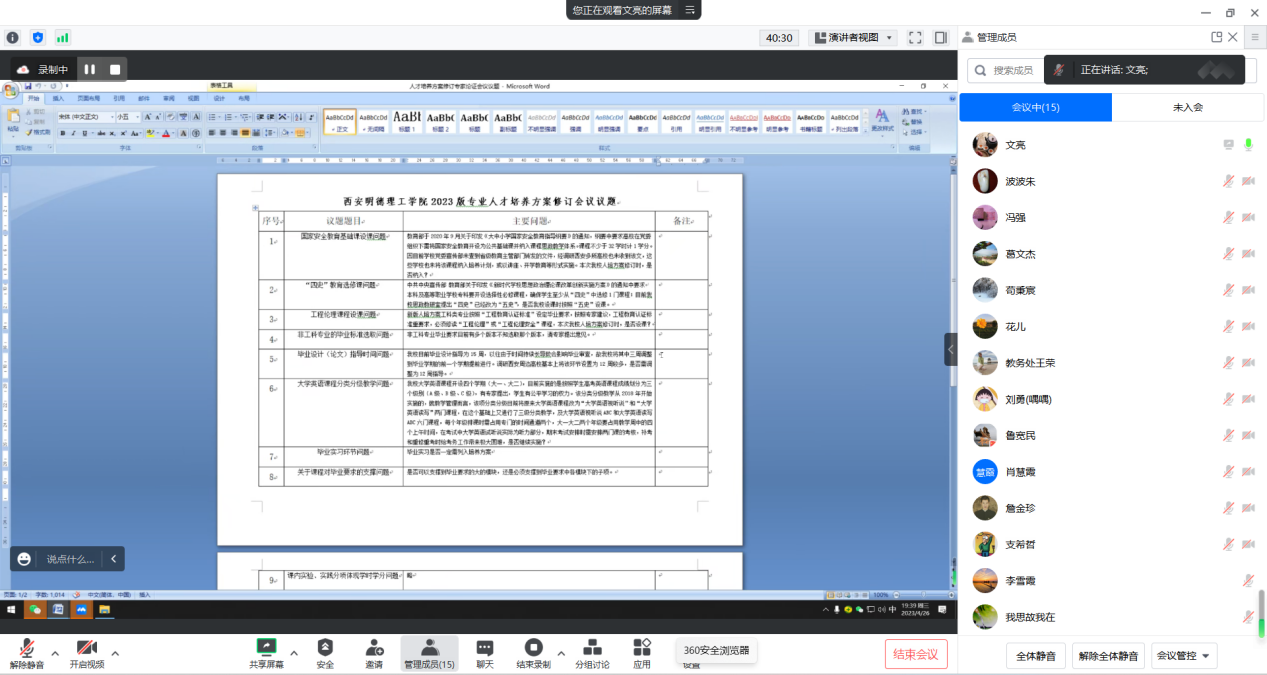 教务处副处长文亮对2023版本科专业人才培养方案修订中的问题、建议以及《关于修订ac米兰官方网站本科专业人才培养方案的指导意见(2023版)》和模板及2023版课程教学大纲模板做了详细汇报。与会的委员就2023版本科专业人才培养方案的指导意见和2023版课程教学大纲模板进行了深入研讨和全面细致的审核,并以投票的形式进行表决。最终全票审议通过了《关于修订ac米兰官方网站本科专业人才培养方案的指导意见(2023版)》、模板以及2023版课程教学大纲模板。
