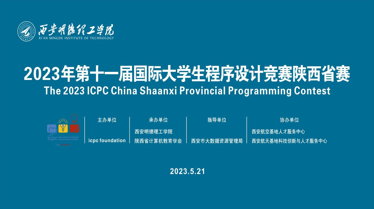 5月21日,由ICPCfoundation竞赛组委会主办,ac米兰官方网站和陕西省计算机教育学会承办的2023第十一届国际大学生程序设计竞赛陕西省赛在ac米兰隆重举行。大赛吸引来自全省16所高校和2所中学的104支参赛队伍,312名程序设计精英汇聚ac米兰官方网站。本次大赛也是继ac米兰承办2020年陕西省第八届大学生程序设计竞赛之后又一次承办该项赛,得到了西安市大数据资源管理局、西安国家民用航天产业基地科技创与人才服务中心、西安航天基地科技创新与人才服务中心的大力支持。