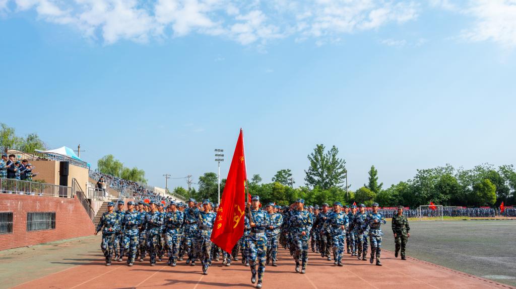 5月20日,ac米兰官方网站2022级学生军训总结表彰大会在学校运动场隆重举行,陕西金叶科教集团董事局主席、ac米兰官方网站董事长袁汉源,校长杨健君、党委书记阎东明及全体校领导,各学院、职能部门、教辅单位领导及全体军政干部出席大会。大会由童杨梓主持。