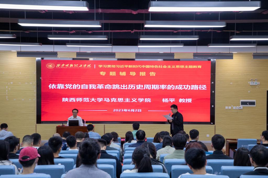 为推动学习贯彻习近平新时代中国特色社会主义思想主题教育走深走实,6月2日下午,学校邀请陕西师范大学马克思主义学院杨平教授作《依靠党的自我革命跳出历史周期率的成功路径》为主题的专题辅导报告。会议由学校党委组织宣传部部长高超主持。全体处科级干部、师生代表参加报告会。