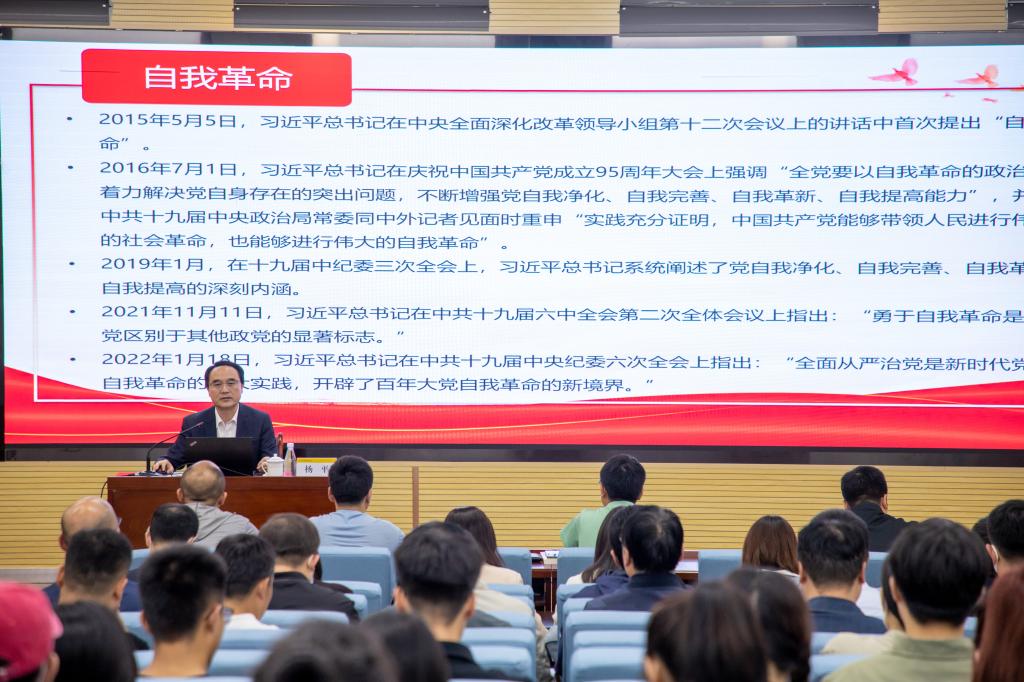 报告会上,杨平教授从“勇于自我革命是中国共产党最鲜明的政治品格”“勇于自我革命是党探索跳出历史周期率的第二个答案”“中国共产党百年的奋斗史也是一部自我革命史”“中国共产党百年自我革命的宝贵经验”“不断完善以全面从严治党推进自我革命的有效途径”等五个方面,以深厚的理论阐释、生动的事例分析和详实的史料解读,全面回顾我党在不同历史时期勇于自我革命的奋斗历程,对自我革命的丰富内涵、实践要求、精神实质进行全面解读,为ac米兰进一步学深悟透习近平新时代中国特色社会主义思想,更加扎实开展好主题教育提供了理论指引。