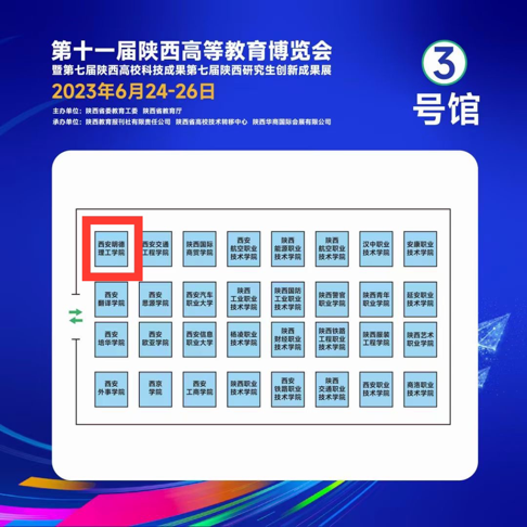 由中共陕西省委教育工委、陕西省教育厅主办的第十一届陕西高等教育博览会于6月24-26日在西安国际会展中心召开。本届主题为“展示办学成果,促进科技成果转化,提高研究生创新实践能力,推动陕西高等教育高质量发展”,过程中组织高等教育博览会主题展、高校科技成果展、校企对接洽谈活动和高等学校招生咨询等活动。