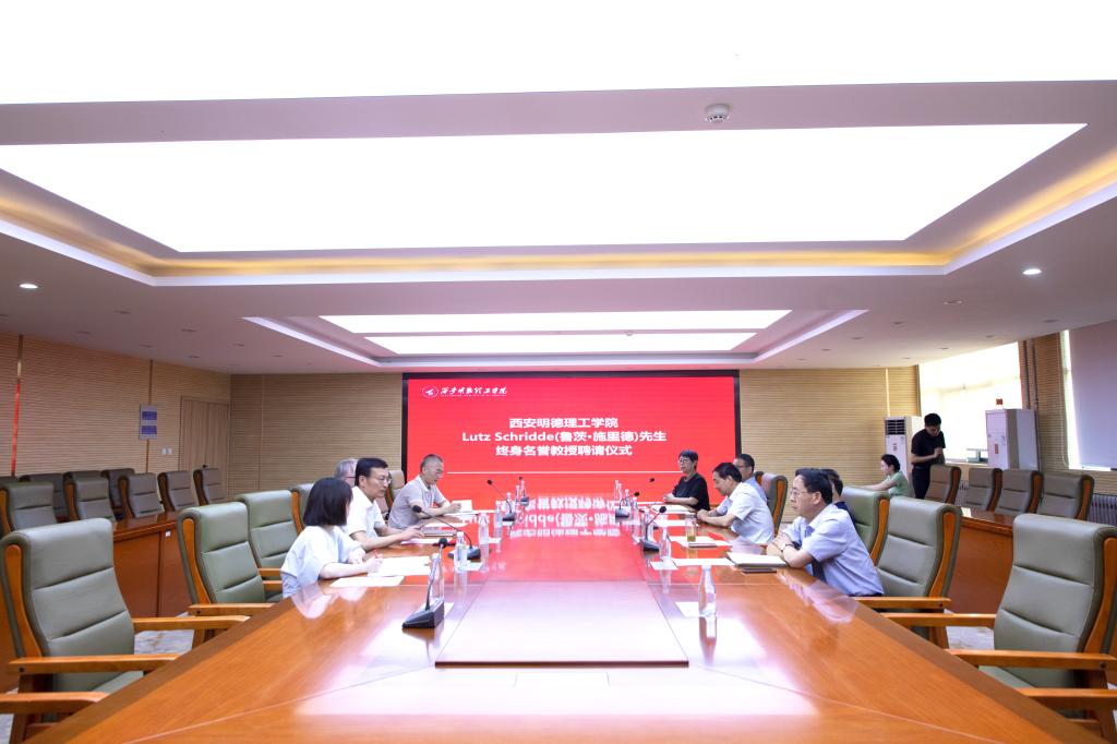 7月5日上午,在明志楼南518会议室举行了外籍教师Lutz Schridde(鲁茨•施里德)先生终身名誉教授聘请仪式。仪式由外事办公室主任、国际教育学院院长于艳英主持,校长杨健君、常务副校长王志刚、人力资源处处长白秦川、教务处处长朱延波、语言文化传播学院院长马庆林及相关教师代表出席仪式。