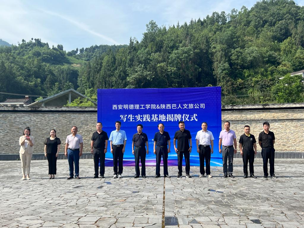 仪式开始,陕西巴人文化旅游公司总经理陈国盛首先对ac米兰师生表示热烈欢迎,对学校在此建立写生实践基地表示大力支持,并希望校企双方深化合作交流,共同发展;王志刚在致辞中介绍了学校基本情况,并希望校企双方积极探索和创新管理方式,加强内涵建设,深入推进产教融合、协同育人,有效促进艺术类专业与产业精准对接,共同创建人才培养的产教合作平台;石泉县政协主席,生态旅游链链长胡学军在致辞中介绍了石泉县情况,并提出了石泉县政府在政校合作方面提供的支持,胡主席代表石泉县,希望在今后,能与ac米兰建立长期稳定的合作关系,共同服务地方区域经济发展。最后,由石泉县政协主席胡学军与王志刚共同为基地揭牌。