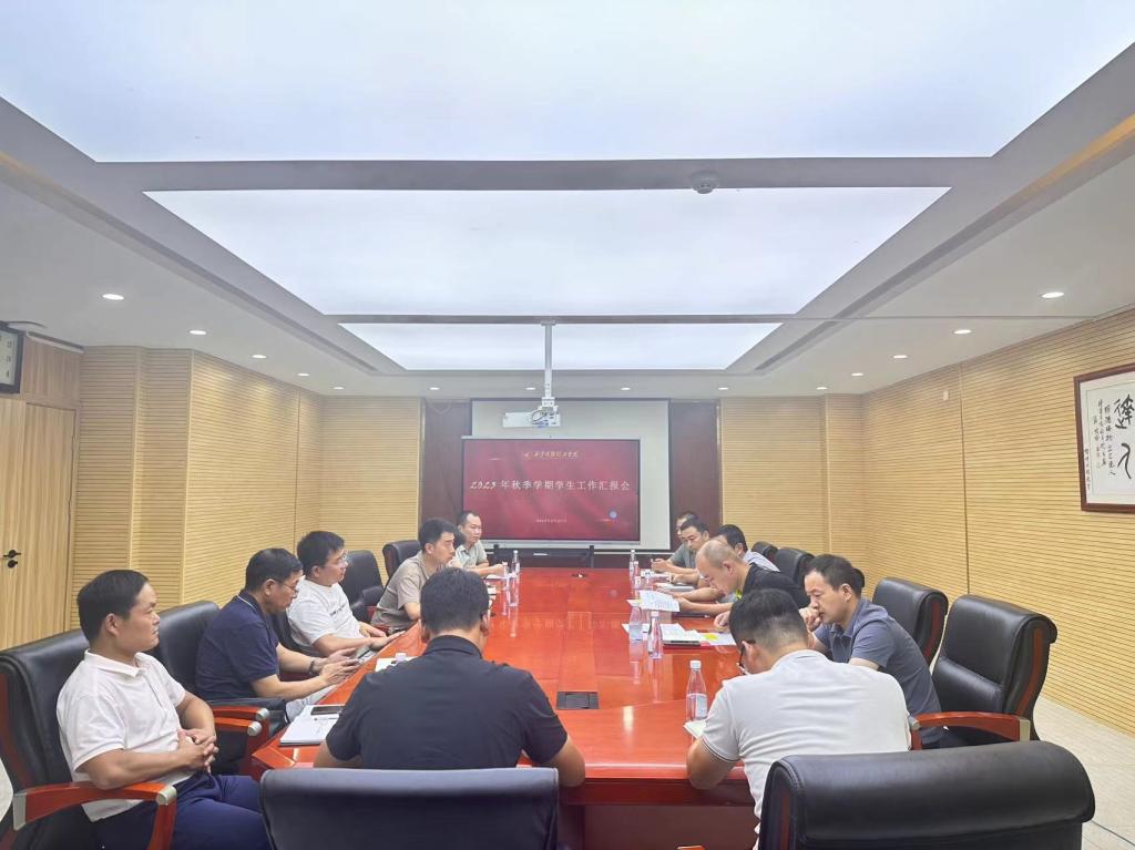 会上,各学院汇报了近期学生工作开展情况。党委学生工作部相关同志就新生接待、宿舍分配、入学教育、新生军训等工作做了详细部署。