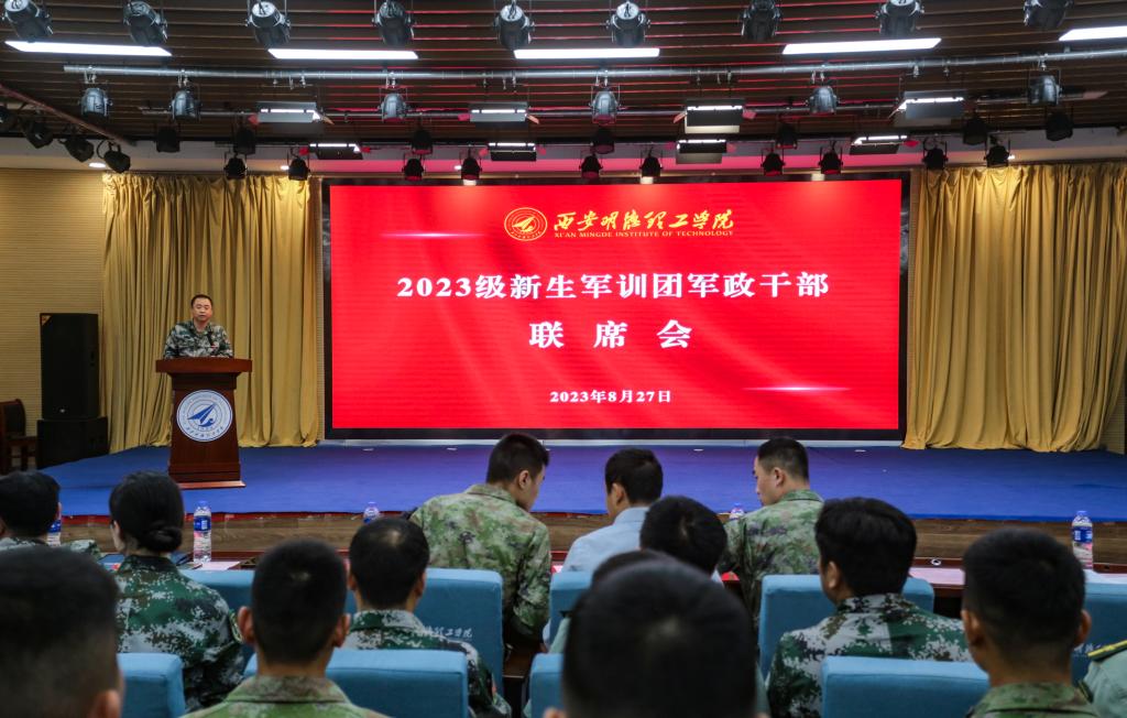 为安全有序地做好2023学年新生军事训练工作,8月27日下午,2023级新生军训军政干部联席会议于建德楼203报告厅举行。学校党委副书记、军训团政委董昊,空军某部、学校军训团团长武文斌,空军某部、学校军训团参谋长余托及全体军政干部参会。会议由军训团副政委王飞主持。