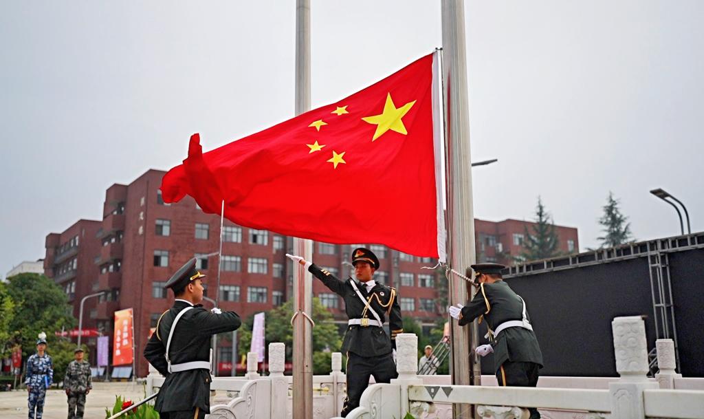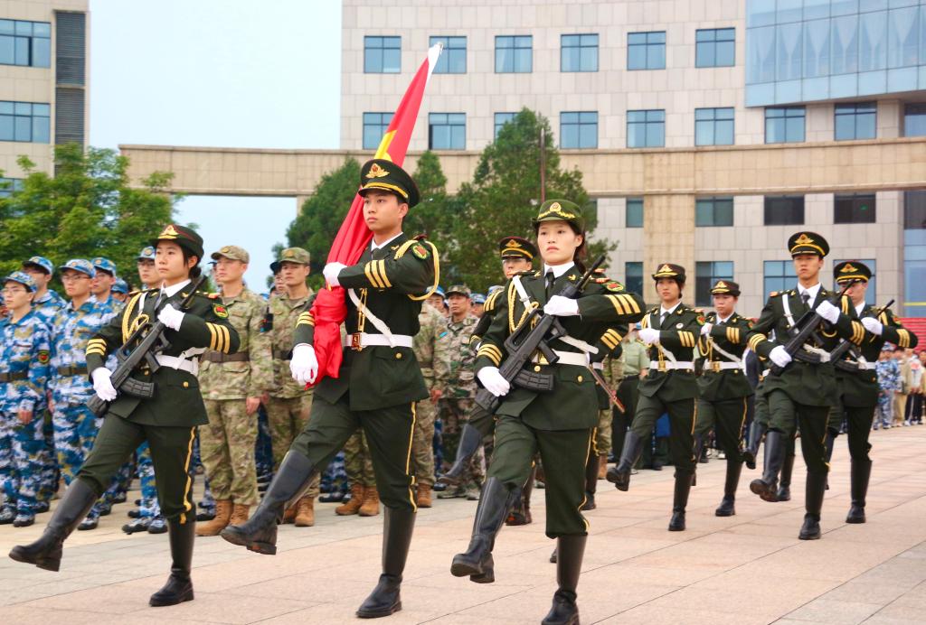 为加强2023级新生的国防意识和理念信念教育,进一步培养学生爱国主义精神和集体主义观念。8月28日上午,学校在中心广场举办 “心系国防,明德励志”2023级新生军训团升旗仪式。学校党委副书记、军训团政委董昊,军训团全体军政干部及2023级参训新生参加本次仪式。