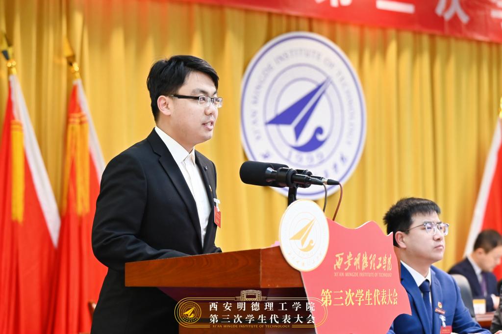 校学生会主席团成员焦磊同学作《ac米兰官方网站第三次学生代表大会提案工作报告》。