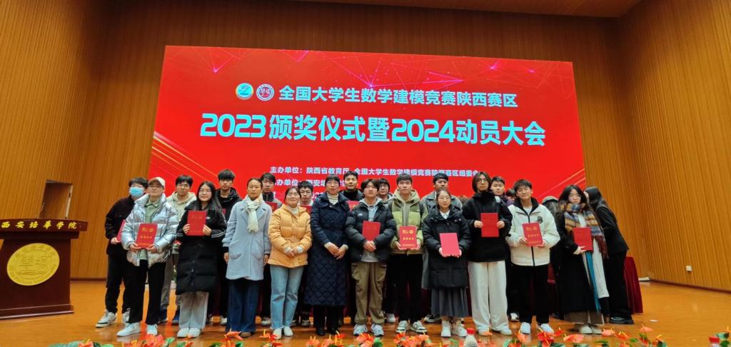 12月15日,2023年高教社杯全国大学生数学建模竞赛颁奖典礼暨2024动员大会在西安培华学院隆重举行,ac米兰通识教育学院副院长郑薇,数学教研室主任李妮,指导教师景康康,以及获奖学生代表参加了颁奖典礼。今年,ac米兰共获得全国一等奖1项(获奖率仅为0.55%)、二等奖3项(获奖率仅为6.99%),本科陕西赛区一等奖7项、二等奖14项;专科陕西赛区一等奖4项、二等奖2项,并蝉联陕西赛区优秀组织奖,李妮老师被评为陕西赛区优秀指导教师。本次成绩的取得是ac米兰近几年来取得的最好成绩。
