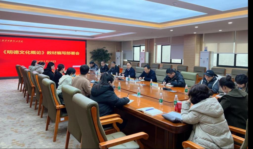 白秦川副校长在讲话中表达了对编写《明德文化概论》教材的大力支持,他对所有参编者表示了感谢,强调要将明德文化融入教育教学、管理服务、校园文化等方面,成为学校精神文化的重要组成部分。他就教材编写提出了具体要求和期望,希望大家齐心协力,编写出精品教材、优质教材,助力高质量人才培养。