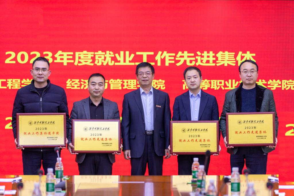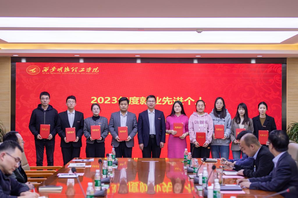 会上,招生就业中心主任刘佳宣读了《关于表彰2023年度就业工作先进集体、先进个人表彰决定》;校党委书记阎东明,党委副书记、副校长刘星分别为获奖的先进集体和先进个人颁奖。