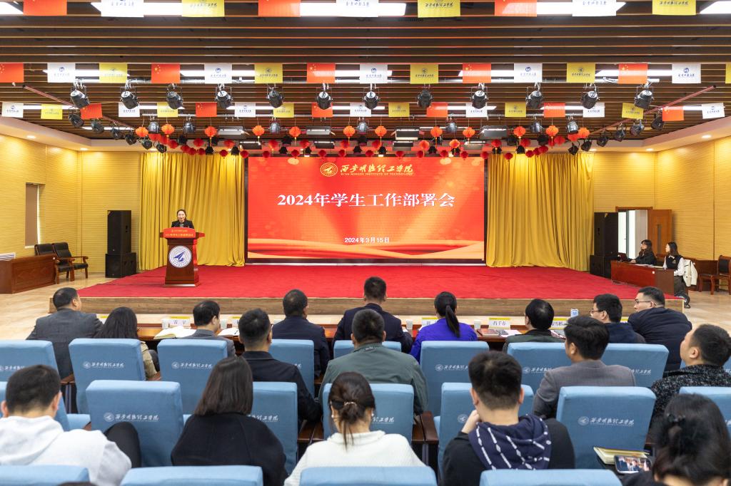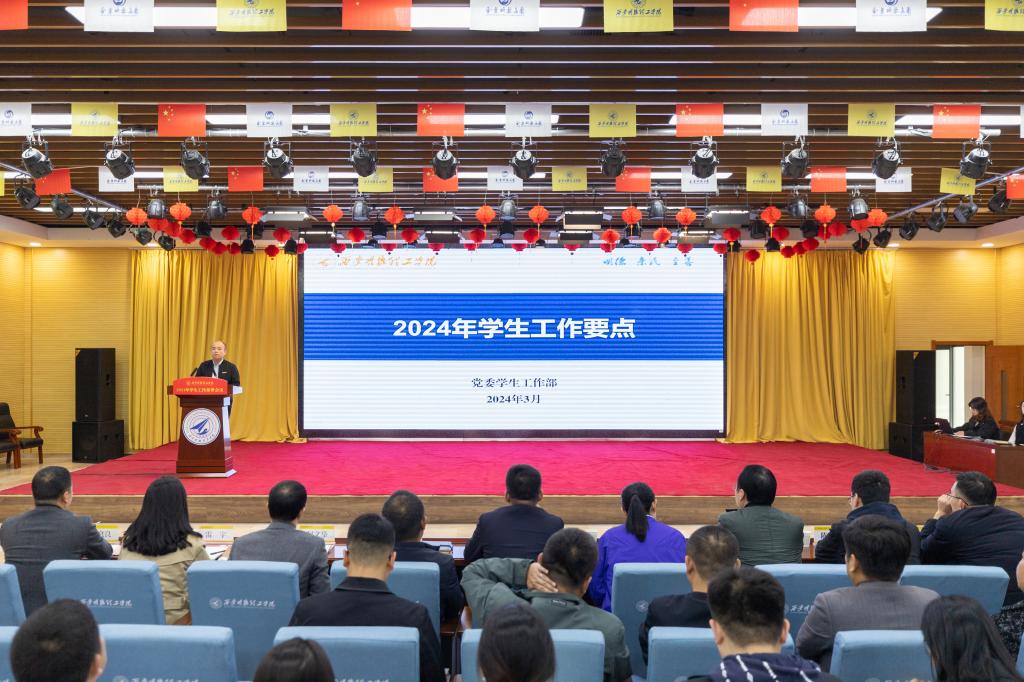为深入学习贯彻习近平新时代中国特色社会主义思想和党的二十大精神,全面贯彻党的教育方针,落实立德树人根本任务,全力统筹安排2024年学生工作,精心谋划开局新篇,3月15日上午,学校在建德楼203报告厅召开2024年学生工作部署会,学校党委副书记、副校长刘星参加会议并讲话。党委学生工作部、招生就业中心、后勤管理处负责人,各学院党委(党总支)书记,全体学生工作干部参加会议。会议由党委学生工作部花芸主持。