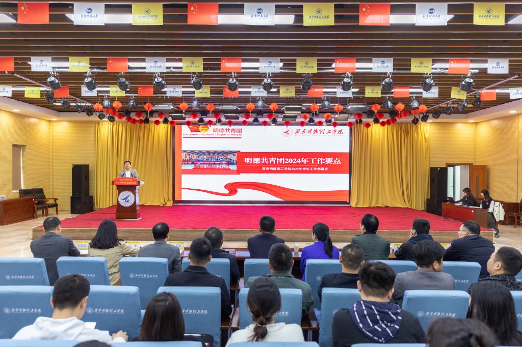 学校党委副书记、副校长刘星作了题为《凝心聚力促发展融合赋能谋新篇为着力构建具有明德特色的高质量学生工作体系不懈努力》的讲话。他在讲话中对2023年学生工作进行简要回顾并给予肯定,并坚持问题导向,针对性地提出了2024年学生工作的新思路、新方法和新要求。他从“四个更加”和“四个现实困境”等时代背景方面,分析了当前学生工作面临的新形势和新挑战;以校长王志刚对构建高质量学生工作体系的具体要求作为方向指引和根本遵循,结合学校顶层设计的内在要求和学生成长的现实需要方面,评析了构建高质量学生工作体系的重要性和必要性,概述了具有明德特色的高质量学生工作体系内涵;从“三个思”和“四个有”等方面,诠释了构建具有明德特色的高质量学生工作体系的思想方法、实践路径;从明德学工人信心建立的三个方面,总结了“明德学工精神”,明确了学校进一步加强辅导员队伍建设的决心。