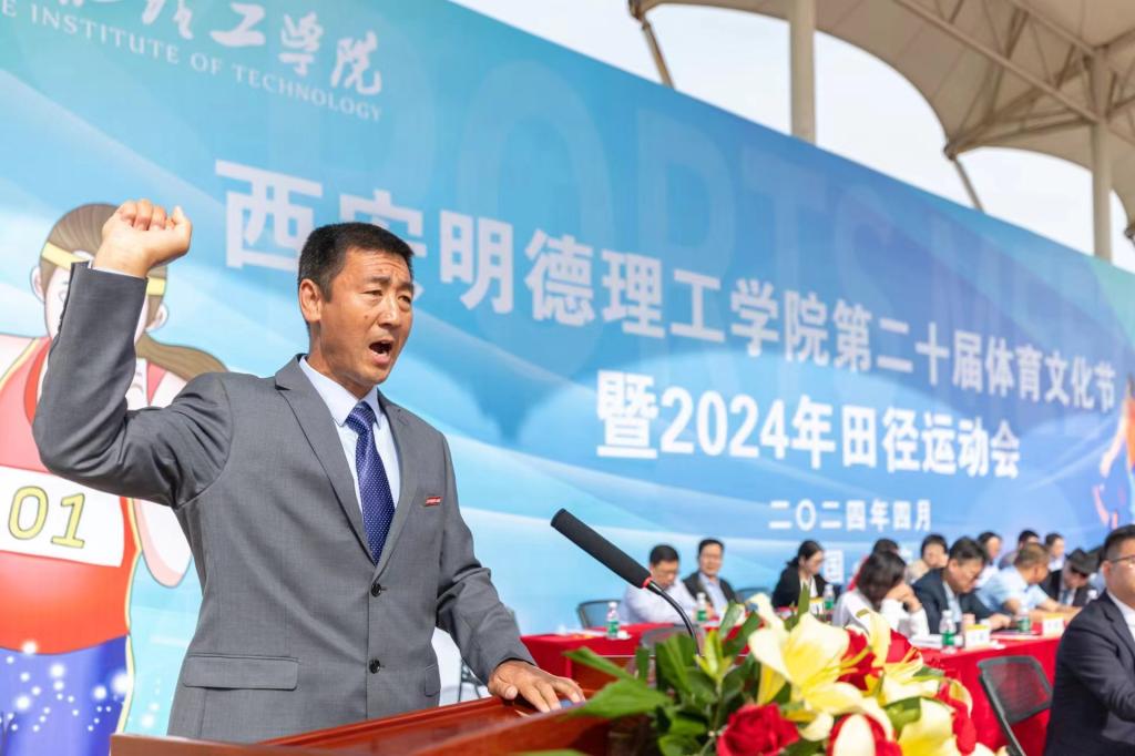王志刚校长致开幕辞,他指出体育是大学教育的重要内容,也是大学实施素质教育的载体和有效途径,体育教学水平和体育运动水平是一所大学办学综合实力和人才培养质量的重要体现。回顾学校25年的办学历程,我们一直高度重视学生德、智、体、美、劳全面发展,在竞技体育、群众体育等方面取得了长足发展,形成了鲜明的体育文化底色。在学校大力推进“五育并举”融合育人的背景下,体育教育教学开展了各项师生课内外体育健身活动,体育文化已成为ac米兰大学文化建设的一张靓丽名片。近三年,ac米兰运动健儿在国家和省市各类体育竞赛中表现出色,充分彰显了学校素质育人、体育育人的丰硕成果。一年一度的体育文化节是对学校体育工作的一次大检阅,希望全体参赛师生,在赛场上发扬“文明、友谊、拼搏、奋进”的优良传统,遵守体育道德和竞赛规则,尊重裁判,顽强拼搏,赛出风格,赛出水平;希望全体观众文明观赛,为运动员喝彩,为运动会营造良好氛围;希望全体裁判员要严肃认真、公平公正、文明执裁,严守操作规程和裁判纪律,确保本届运动会安全、高效、有序,我们要把本届运动会办成一届有特色、高水平的体育盛会,为学校建校25周年献礼。