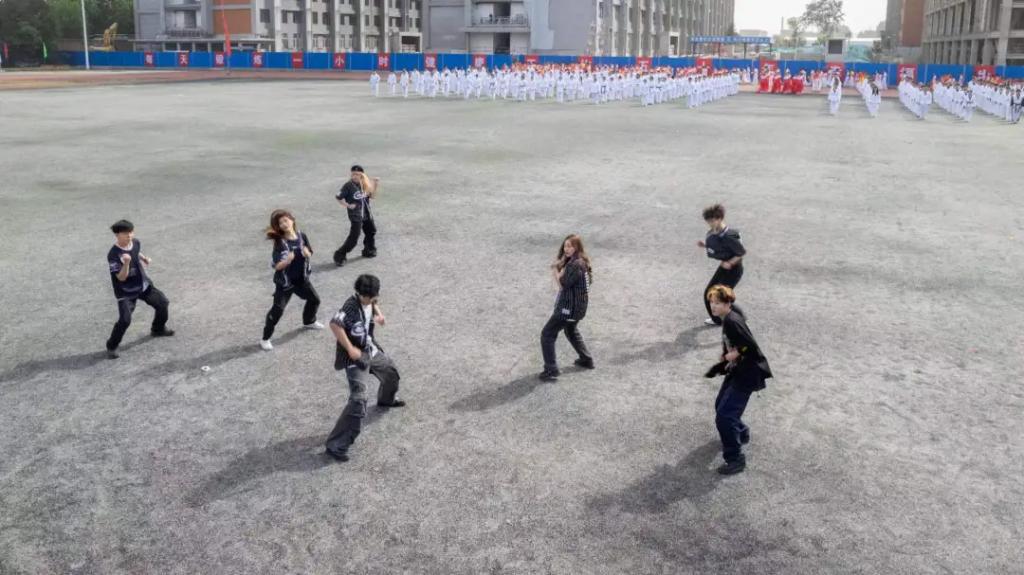 校跆拳道空手道带来的集体表演,展示了太极一章、高难腿法技术、跆舞的精彩表演。