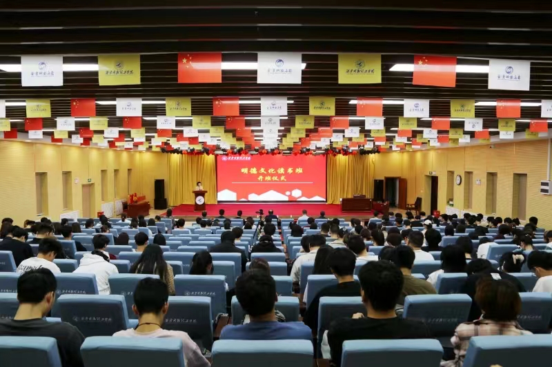 4月23日晚,学校在建德楼203报告厅举行“明德文化读书班”开班仪式暨专题讲座,校长王志刚、副校长朱延波、学校办公室副主任刘书沛、党委组织宣传部部长高超、马克思主义学院副院长惠斌、图书馆副馆长强丽丽、明德文化读书班指导老师及学生代表们参加了会议。会议由图书馆馆长王爱霞主持。