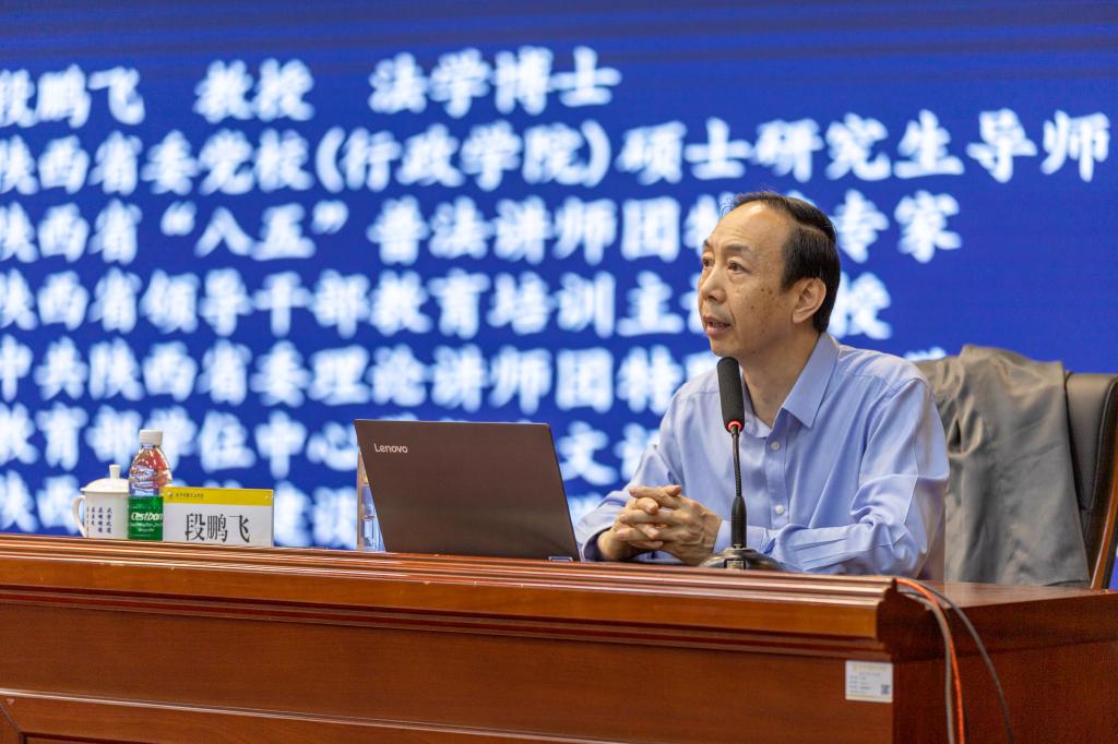 为深入学习习近平总书记关于党纪学习教育的重要讲话精神,扎实推进党纪学习教育,4月28日下午,学校召开党委理论学习中心组扩大会,特邀陕西省委党校(陕西行政学院)党建教研部段鹏飞教授解读新修订的《中国共产党纪律处分条例》。校党委理论学习中心组成员、全体处科级干部、各级党组织书记参加会议。会议由党委书记、校党纪学习教育领导小组组长阎东明主持。