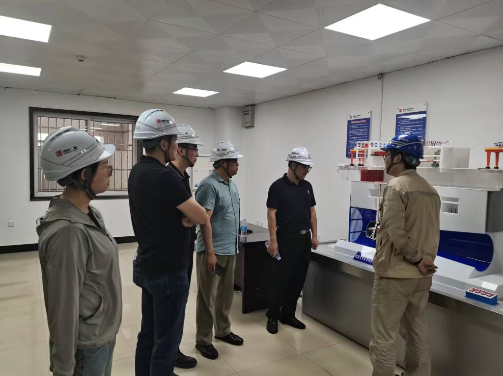 首先,在汉江公司党委委员、副总经理、蜀河水力发电厂党支部书记、厂长董宁的陪同下,ac米兰人员参观了水电厂的发电机层、水轮机层、泄洪闸门、中控室和水电机组模拟操作培训室,了解了并网发电、贯流式机组运维、电力智慧调度等情况。