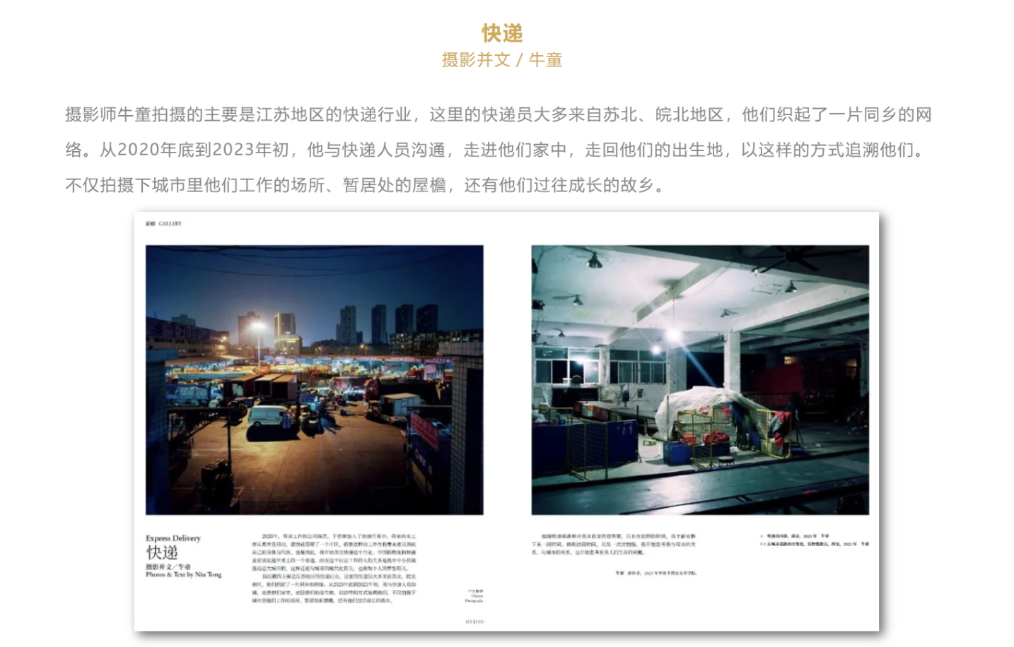 影视摄影与制作专业教师⽜童摄影作品《快递员的⽇常》在《中国摄影》2024年5期(C刊)刊发,五⼀劳动节之际,新华社五⼀专题报道“劳动者之歌”板块予以载。