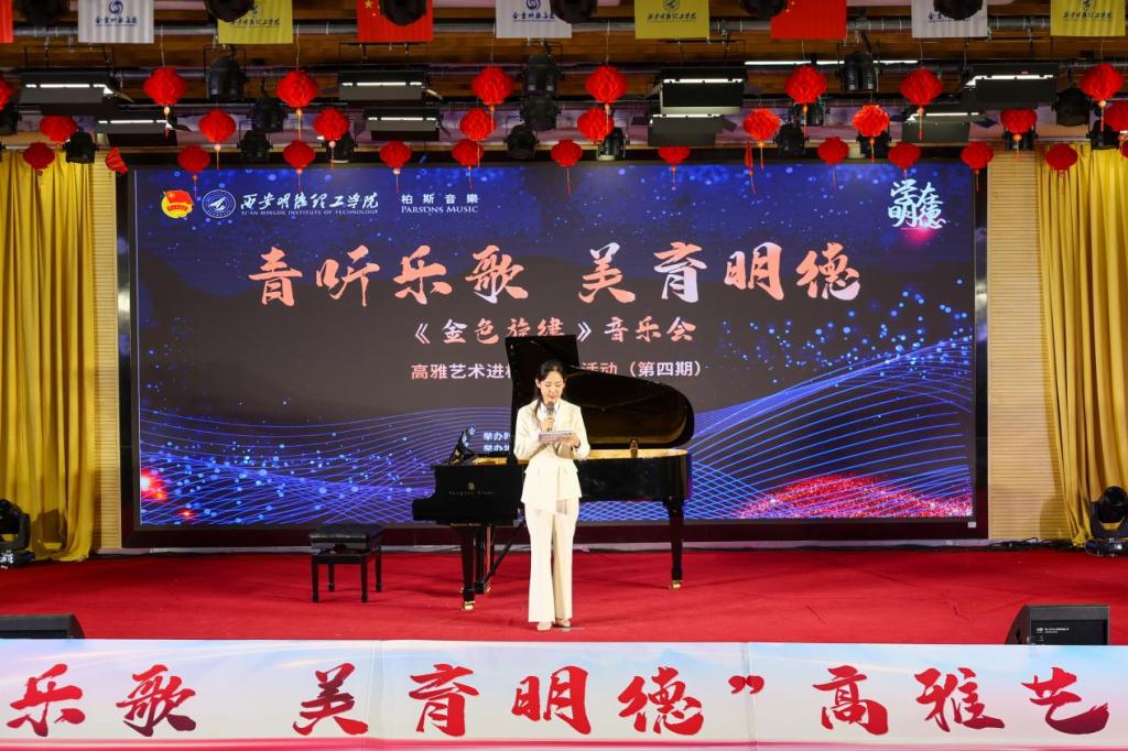 为提升师生的艺术修养,营造良好的校园文化氛围,6月5日,由校团委主办,艺术与设计学院团委承办的高雅艺术进校园活动“金色旋律”音乐会在建德楼203成功举办。来自陕西省音乐家协会、陕西省交响乐团、西安音乐学院等14位艺术家们为学校师生带来了一场震撼心灵的音乐盛宴。学校党委副书记、副校长刘星、副校长陈鹏与400余名师生观看了音乐会。