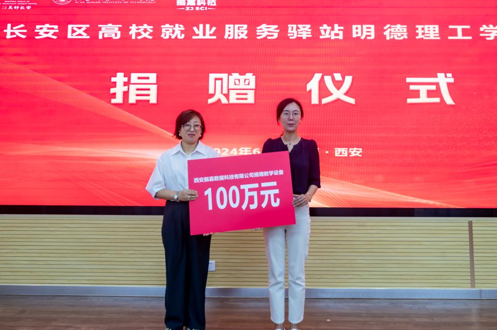 翟书颖院长代表学校接收西安振嘉数据科技有限公司捐赠的教学仪器设备并向受聘就业导师颁发了聘书。
