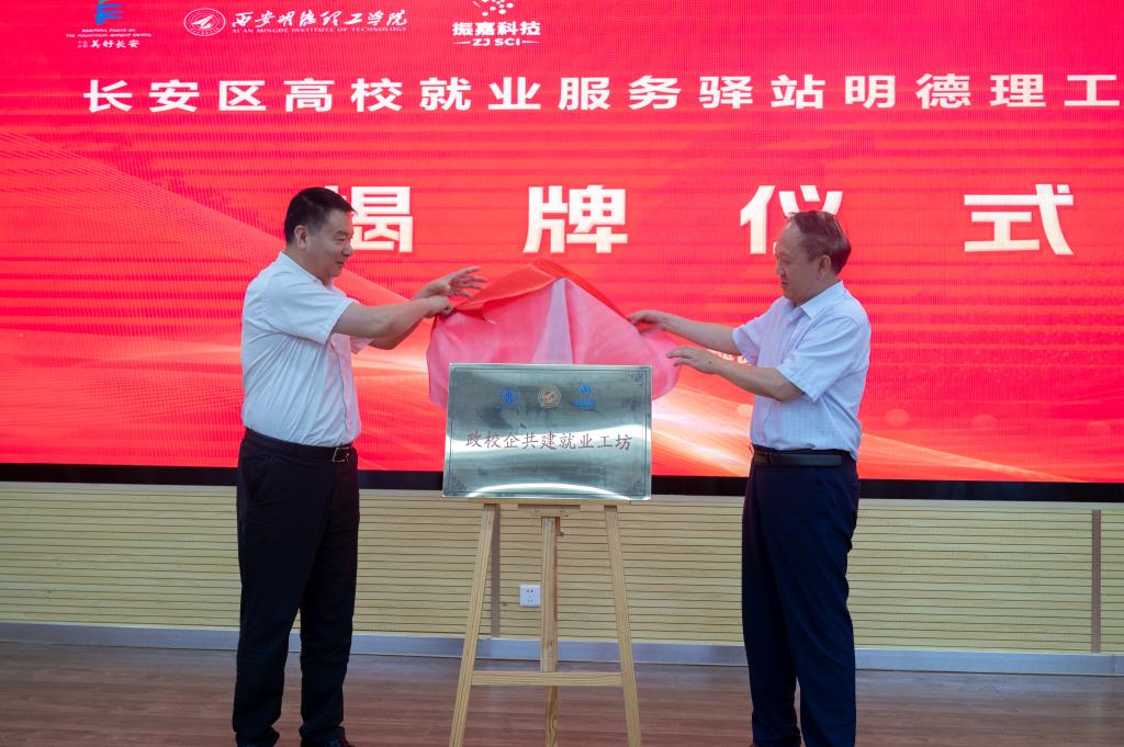 为深入贯彻落实国家关于高校毕业生就业工作的决策部署,进一步搭建政校企合作平台,促进院校人才培养与企业用人需求紧密结合,集中资源优势、深化产教融合。6月21日,长安区人力资源和社会保障局、ac米兰官方网站、西安振嘉数据科技有限公司“政校企共建就业工坊”揭牌仪式暨就业促进活动成功举办。ac米兰官方网站校长王志刚、副校长白秦川,长安区人社局局长邢顺耀,人才交流服务中心主任杨涛、副主任王宇,西安振嘉数据科技有限公司总经理马燕、副总经理田瑞超、校企合作部部长徐永娜,中软国际CIG西北区销售经理翁淅鹏以及学校招生就业中心、信息工程学院班子成员、师生代表200余人参加了活动。