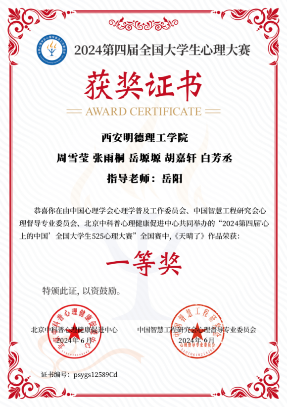 此次获奖不仅是对学生和老师辛勤付出的肯定与鼓励,更是对学校对“教在明德、学在明德”教育理念的生动诠释。相信在未来的日子里,明德学子们将继续创作更多优秀的作品,为推动心理健康知识普及、提高大学生心理健康水平贡献自己的力量。同时,也期待更多的作品能够关注大学生心理健康以问题,共同营造一个健康、积极、阳光的校园环境。