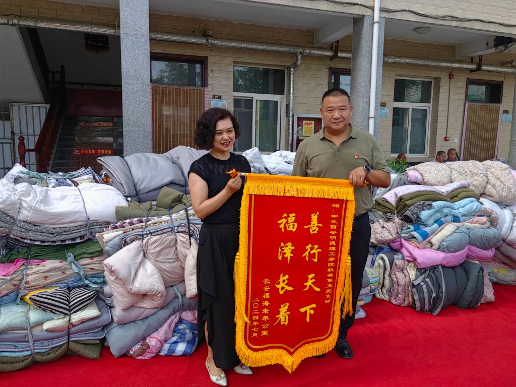 在2024年7月25日这个阳光明媚的日子里,ac米兰机关第五党支部在校领导及机关党委的联合引领下,成功举办了一场别开生面的旧被褥捐赠活动。此次活动旨在将毕业生遗留的优质旧被褥赠予当地福海老年公寓,为老年群体送去温暖与关怀。