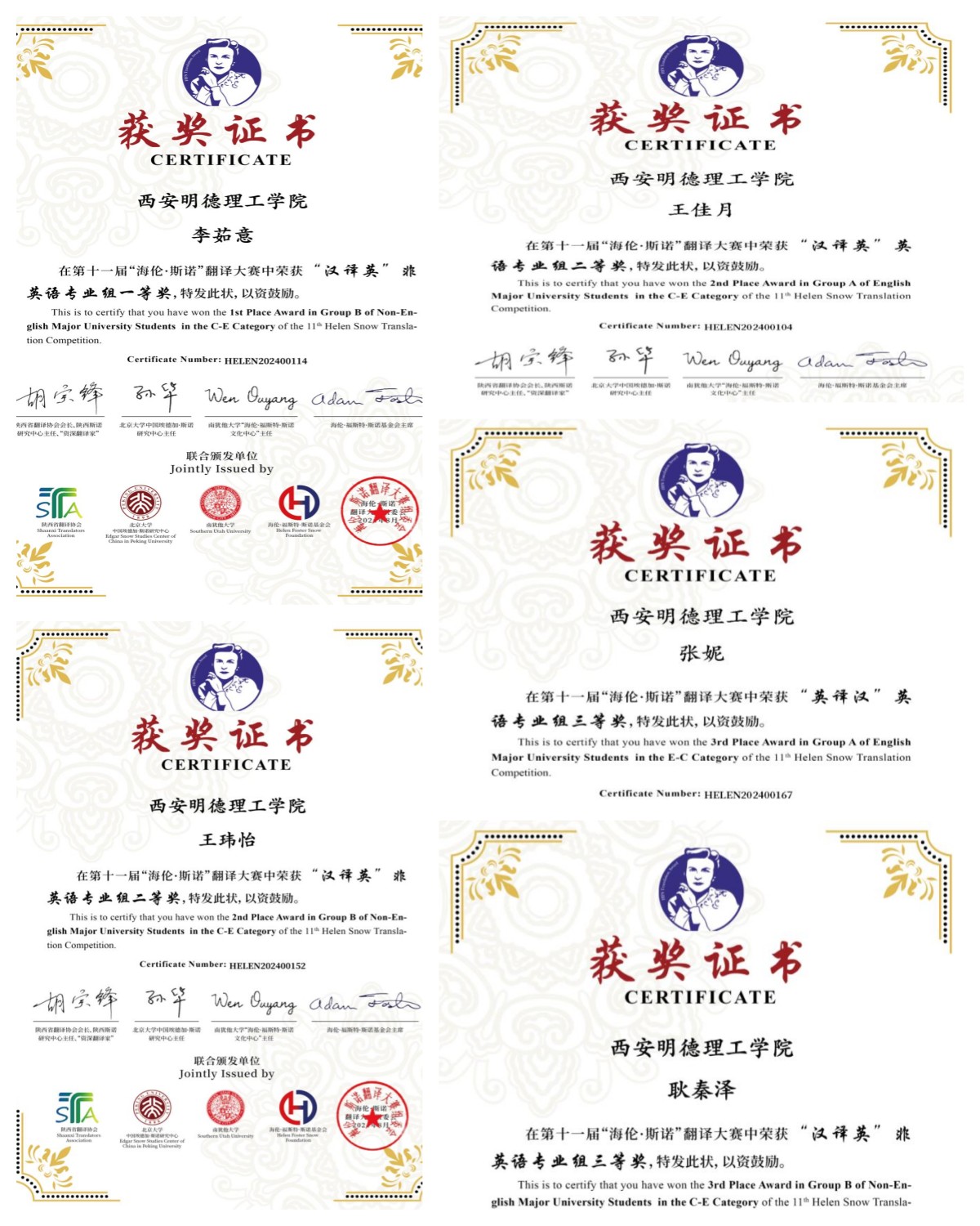 近日,第十一届“海斯·斯诺”翻译大赛圆满落幕,ac米兰官方网站的学子们在大赛中取得了优异的成绩,展示出了ac米兰良好的学习风貌。全校有 148位同学参赛,共获奖55项。其中,语言文化传播学院的王佳月、魏锦儿2位同学获得A组(英语专业组)二等奖,陈真羽、张妮、金美丽等7位同学获得A组(英语专业组)三等奖及优秀奖;信息工程学院李茹意同学获得B组(非英语专业组)一等奖;信息工程学院曾雨欣、经济与管理学院王玮怡、王雨清等12位同学获得B组(非英语专业组)二等奖;智能制造与控制技术学院耿秦泽、经济与管理学院侯佳莹、信息工程学院何家豪等33位同学获得B组(非英语专业组)三等奖及优秀奖。