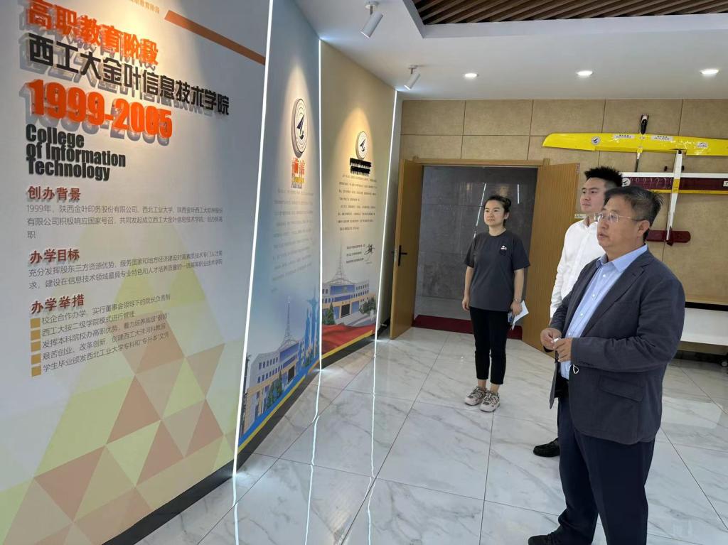李印杲副总裁一行在张健副院长陪同下参观了校园,以及校史馆、图书馆、2号实训楼教学成果展,学校陪同人员全面介绍了学校的文化底蕴、教育资源以及实践教学成果。