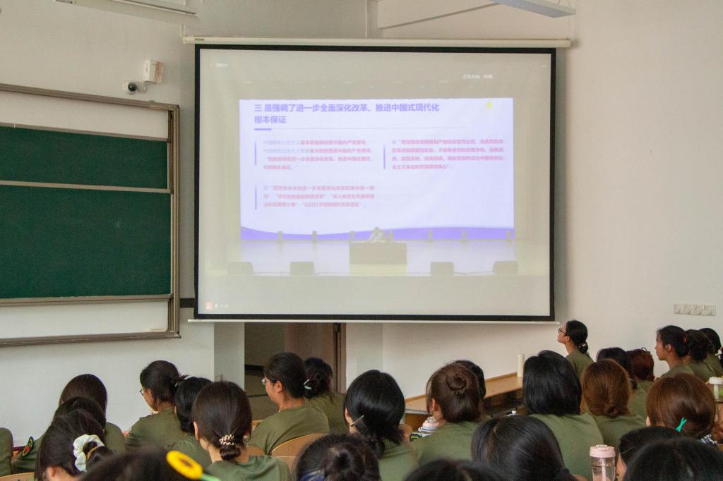 马川鑫以“深入学习贯彻党的二十届三中全会精神,以青春之我助力强国建设与民族复兴”为主题,从党的二十届三中全会有关情况和重大意义、党的二十届三中全会对教育事业作出的重要部署、学习贯彻党的二十届三中全会精神应该把握的重点以及如何贯彻落实好党的二十届三中全会精神等几个方面,结合大量的数据和事例,介绍了新时代以来我国经济社会发展取得历史性成就、发生历史性变革。他指出,党的二十届三中全会是在以中国式现代化全面推进强国建设、民族复兴伟业的关键时期召开的一次十分重要的会议,彰显了以习近平同志为核心的党中央将改革进行到底的坚强决心和强烈使命担当。全会通过的《中共中央关于进一步全面深化改革、推进中国式现代化的决定》,是指导新征程上进一步全面深化改革的纲领性文件。《决定》鲜明提出“统筹推进教育科技人才体制机制一体改革”,为高等教育改革发展提供了根本遵循和宝贵机遇。