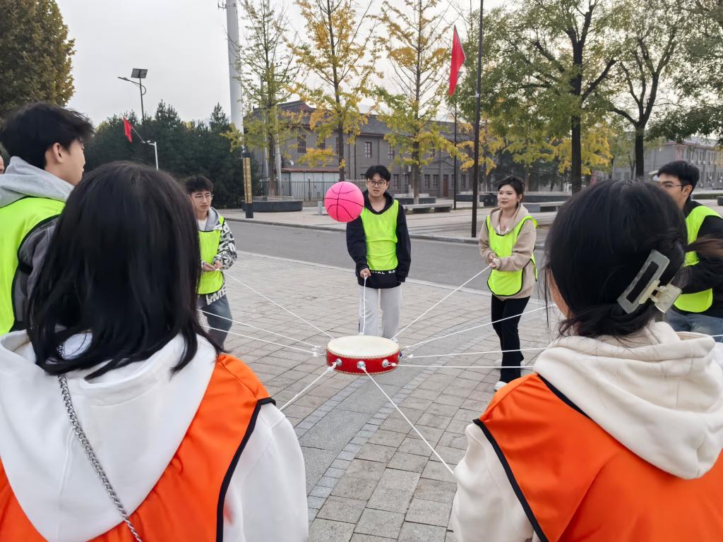 第二天的素质拓展活动精彩纷呈。“鼓动人心”项目中,成员们围绕着一面大鼓,每人牵拉着鼓上的绳子。随着小球的抛起,大家齐心协力地控制鼓面的起伏,让小球能够在鼓上连续跳动。每一次成功的击球都伴随着欢呼声,这不仅考验着团队成员之间的协作与默契,更需要大家保持专注和统一的节奏。