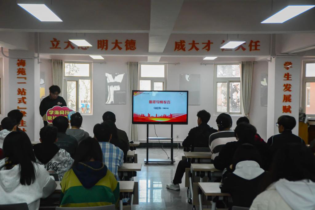 在朋辈导师发言环节,导师代表马宏伟走上讲台。作为亲身参与帮扶工作的一员,马宏伟有着深刻的感悟与体会。他感慨地说,在帮助他人的同时,自己也收获颇丰,不仅巩固了专业知识,还提升了沟通表达和组织协调能力。他的发言让大家看到了朋辈帮扶双向促进的积极作用,也为更多有志于成为朋辈导师的同学提供了宝贵经验。