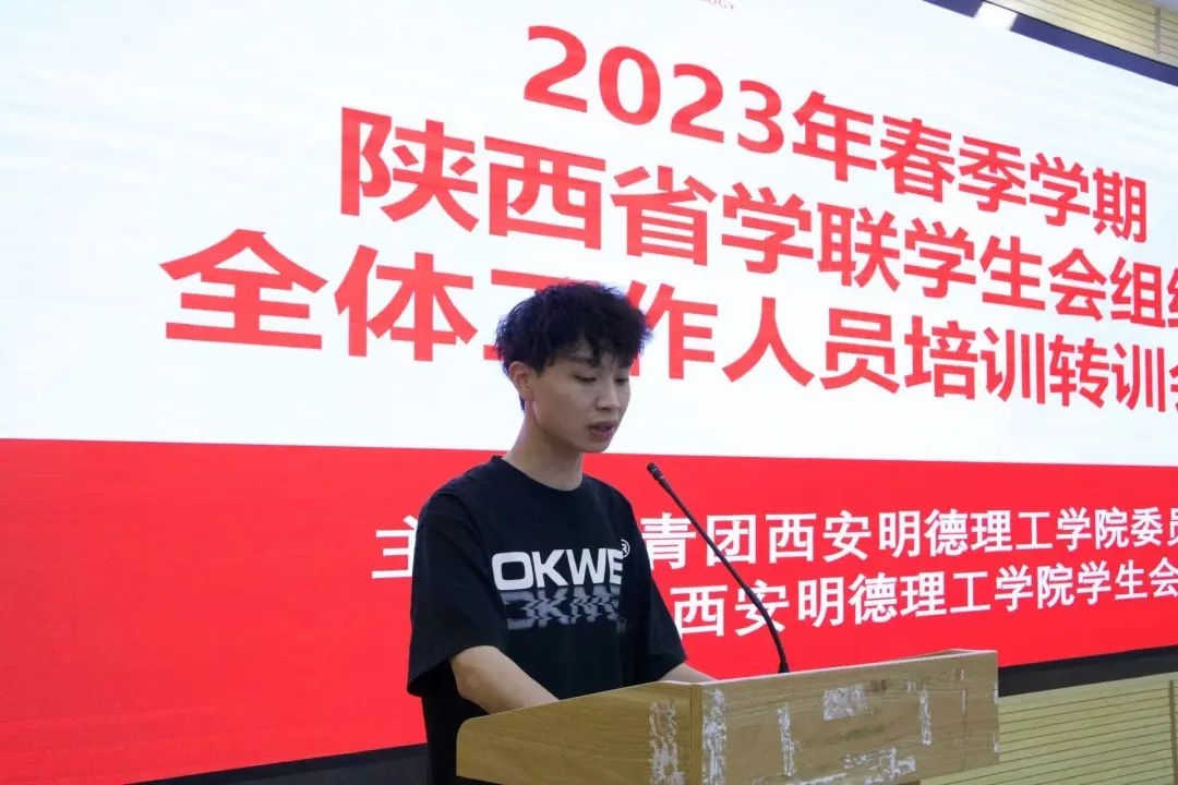 为深入学习贯彻党的二十大精神,贯彻落实习近平总书记关于青年工作的重要思想,进一步深化陕西省学联学生会组织改革和建设,不断增强学生会组织的政治性、先进性、群众性,5月18日下午六点,ac米兰官方网站学生会全体工作人员培训会于6号楼202顺利召开。校学生会、各院学生会主席团成员及部门负责人参加了此次会议。校学生会主席团成员焦磊作为2023年春季学期陕西省学联学生会组织全体工作人员培训会线下会议代表对本次会议进行领学。