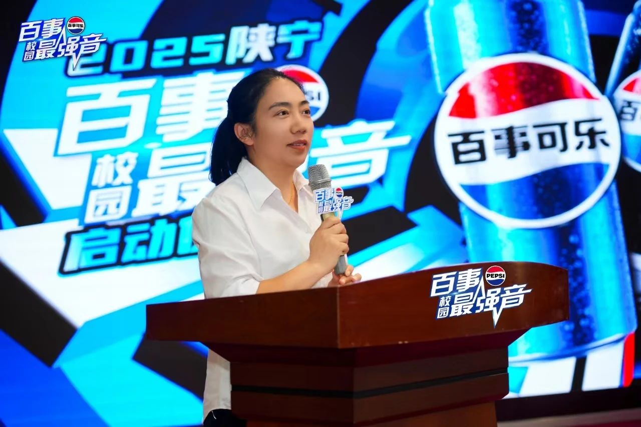 活动伊始,百事可乐陕宁公司品牌市场总监原敏女士发表致辞。她表示,作为深耕青年文化的品牌,陕宁百事始终关注高校学子的创造力与艺术表达,期待通过“校园最强音”这一平台,发掘更多音乐新星,赋能青年梦想。原敏总监特别强调,本届赛事将聚焦音乐原创性与多元表达,鼓励学生用歌声传递时代正能量,展现当代青年的精神风貌。