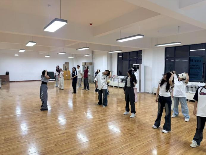 流行舞队以流行舞蹈为主攻方向,采用“老带新”分组教学模式,围绕节奏感、爆发力和团队默契展开特训。为备战校级活动,李妍真老师组织指导编排《爱乐之城》、《diamond 》等,将Hip-hop和jazz 元素结合,展现都市青年的昂扬风貌。