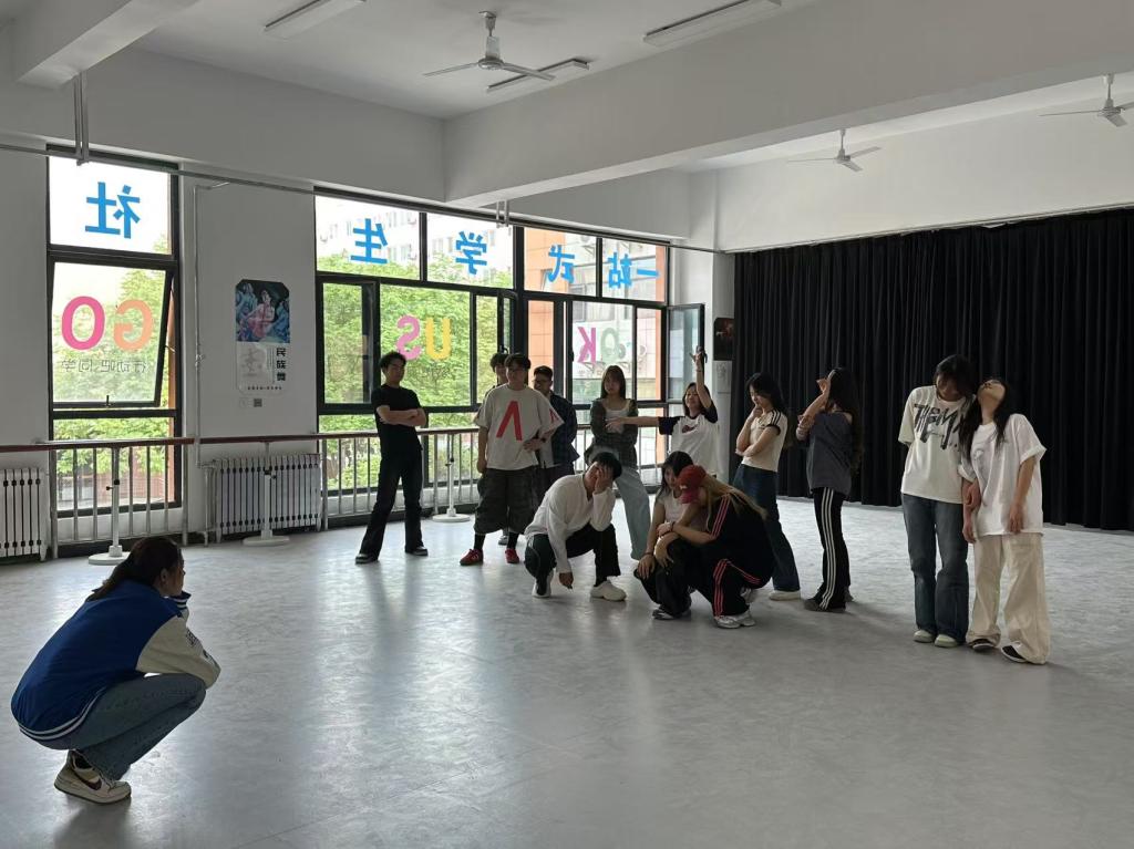 当代舞队聚焦肢体语言与情感表达的融合,每周两次的训练中融入基础训练、现当代舞编创和古典舞排演。队员们以社团文化、五四表彰大会,董笑、李丹妮老师指导编排舞蹈《流水桃花》、《红船》,通过刚柔并济的动作展现当代青年对党对国家的赞美。