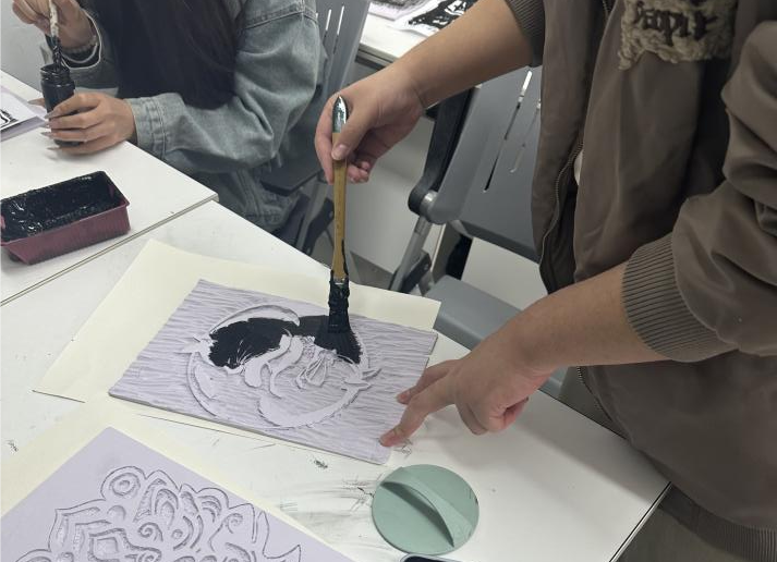 我们在老师的指导下,感受刻画活动,用雪弗板代替木板刻画,雕刻出自己喜欢的图案,通过油墨印刷到纸,展现出独特的艺术作品