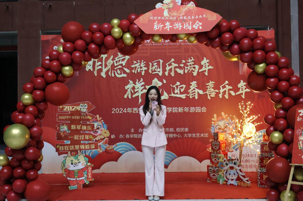 嘉年逢盛世,祥龙踏舞来。1月1日,学校两校区举办“明德游园乐满园 祥龙迎春喜乐年”元旦游园会活动。游园会分为“金龙贺岁”合影区、“齐乐龙龙”互动区、“龙运当头”抽奖区、“龙腾虎跃”挑战区、“八面灵龙”diy区、“龙重登场”新年时光路演六个活动区域。