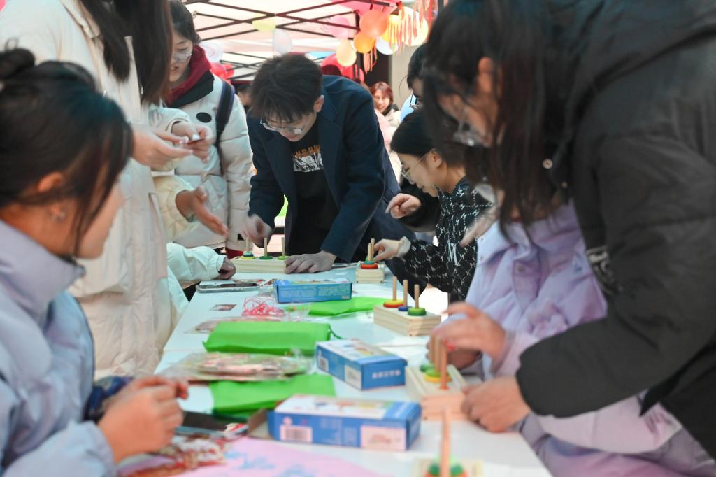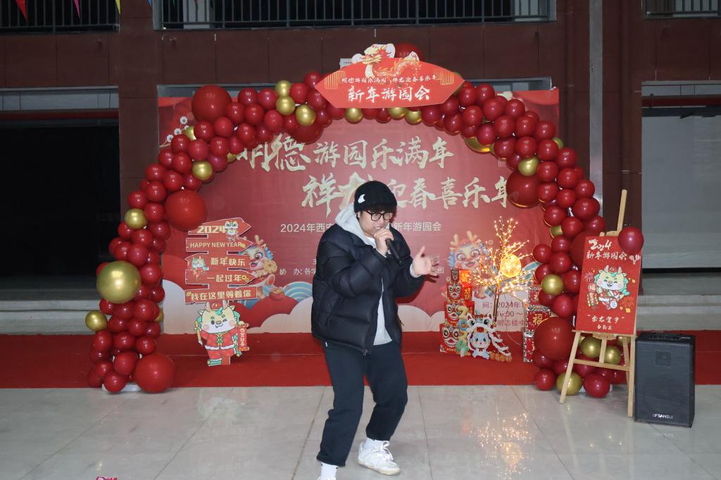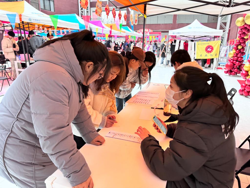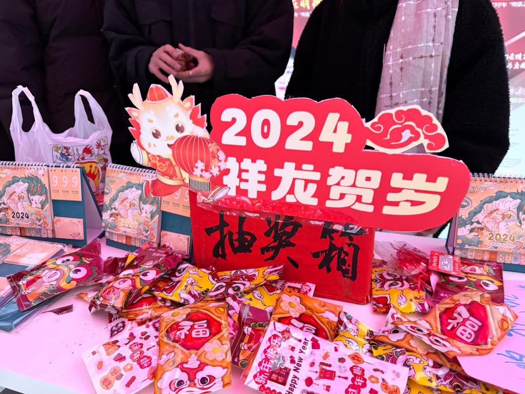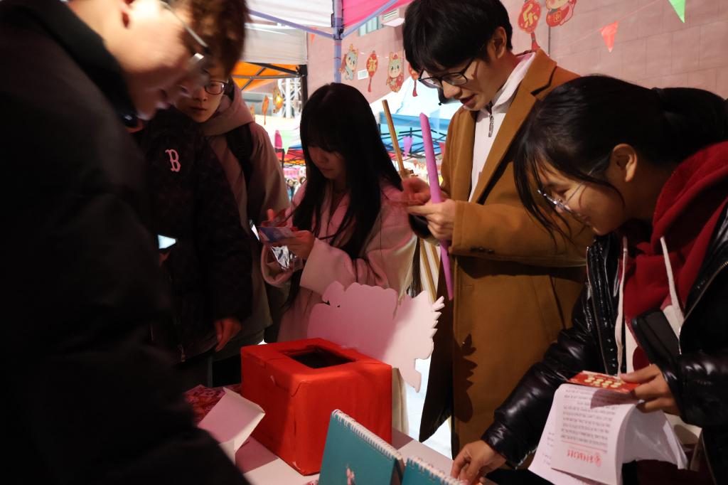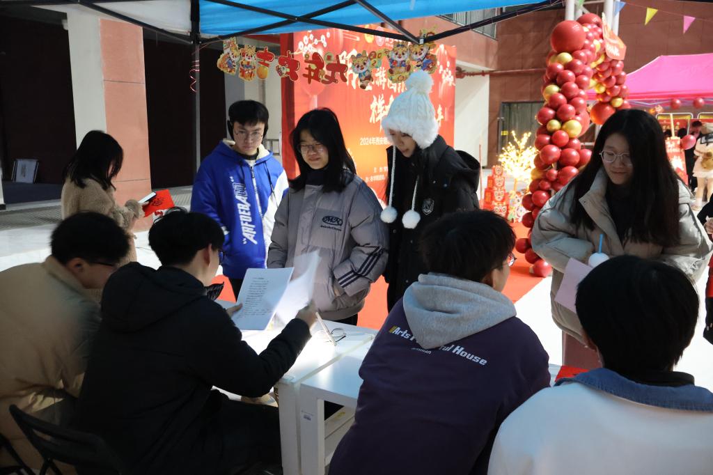 “龙运当头”抽奖区设置主题限量版集“福”卡,同学们通过参加不同摊位活动游戏进行集“福”,集齐相应数量的“福”字可参与抽奖获得新年礼品。游园现场气氛热烈,充满欢声笑语。
