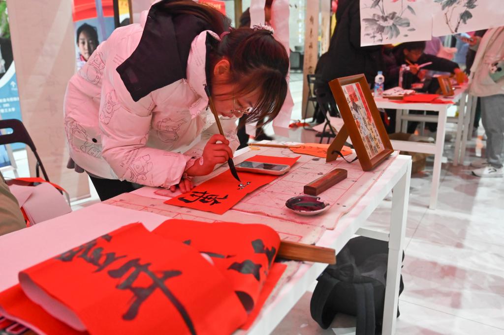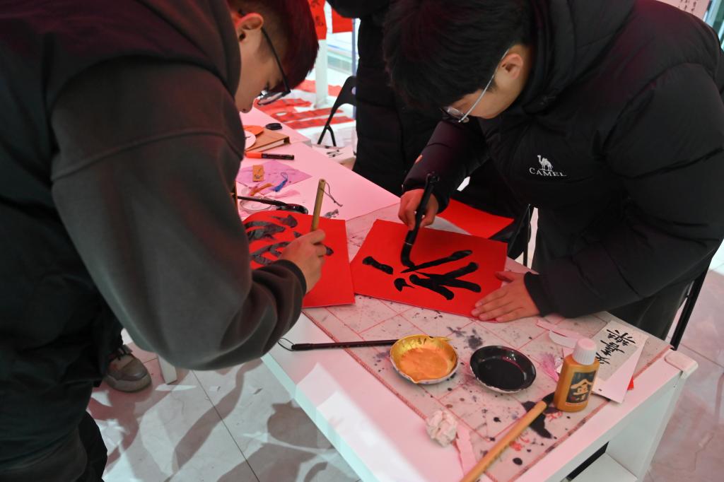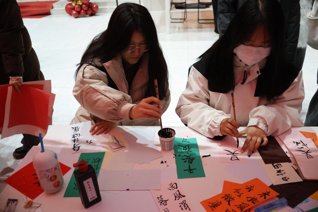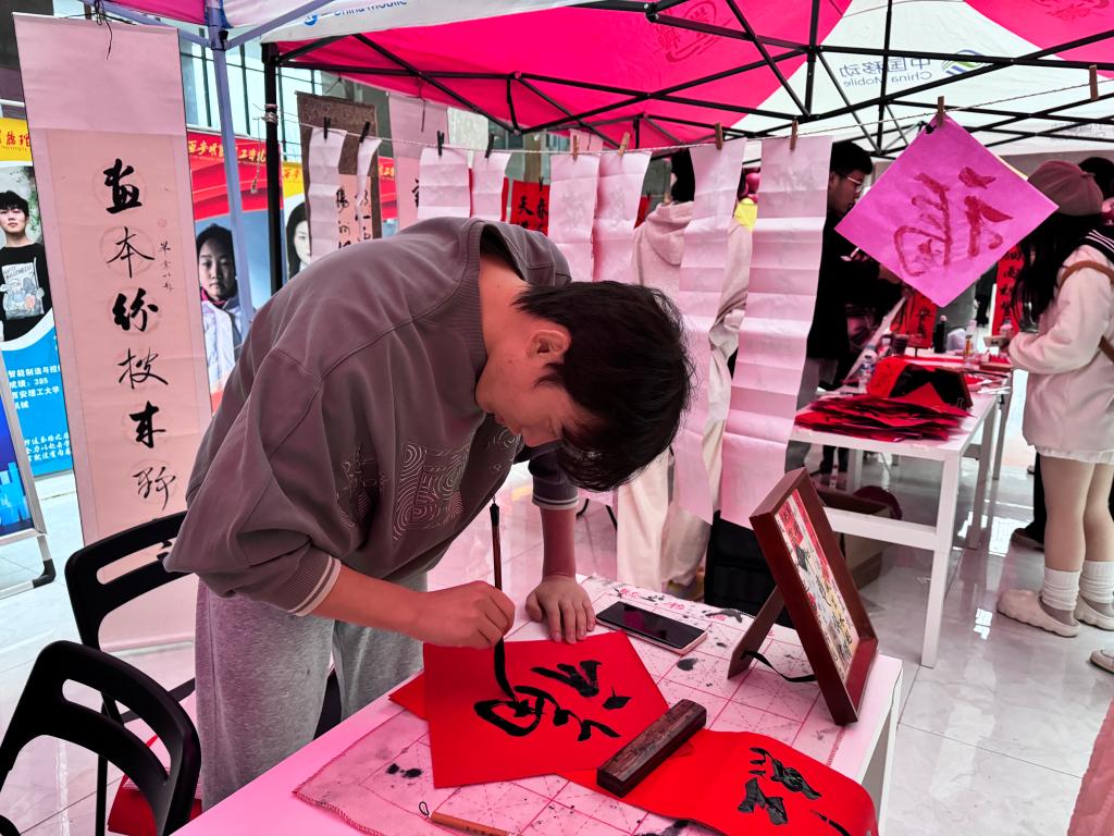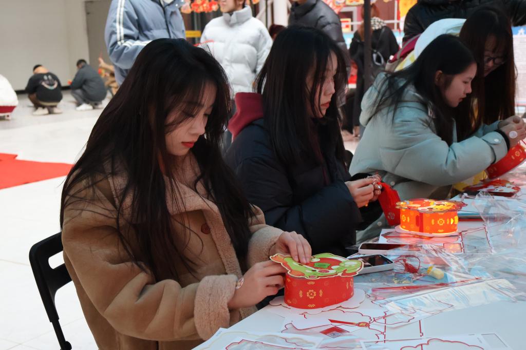 “八面灵龙”极具国风韵味的书法、灯笼、剪纸、新年福签diy手作区,吸引许多同学们参与,动手制作新年手工,陶冶情操的同时表达了自己最真挚的祝福。