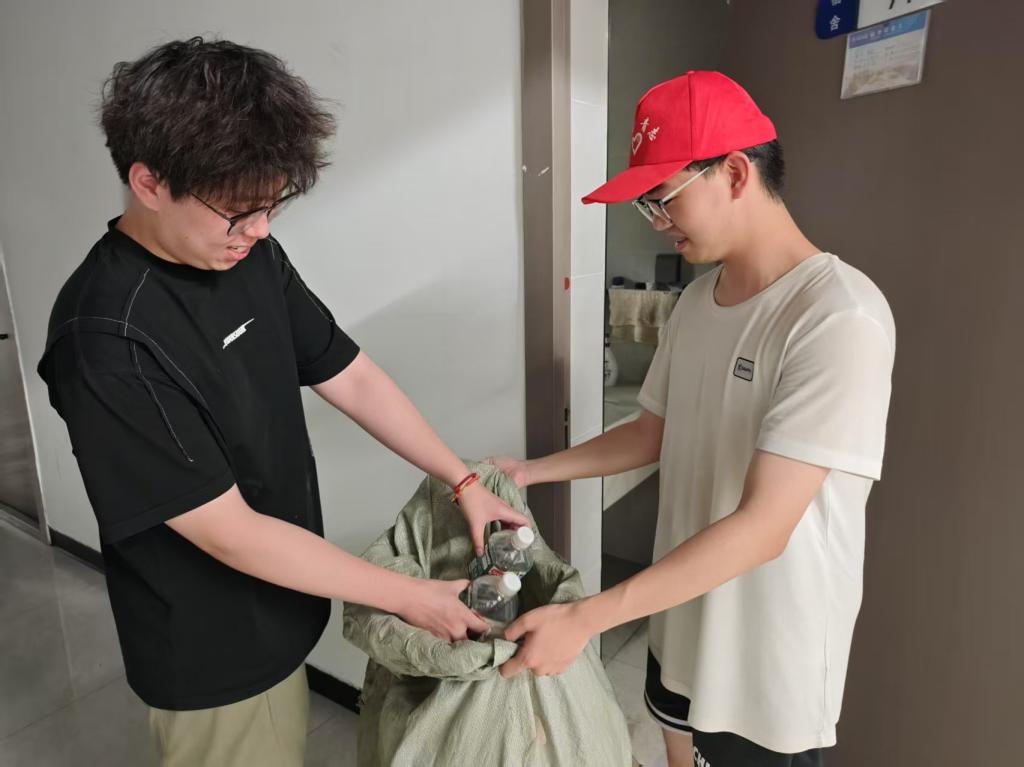 活动伊始,志愿者们迅速而有序地进行分工,随后如灵动的身影般穿梭于各宿舍楼之间。他们礼貌地敲开一间间宿舍的门,微笑着向同学们说明来意,仔细搜寻每一个可能藏有废弃瓶子的角落,绝不放过任何一处 “爱心之源”。